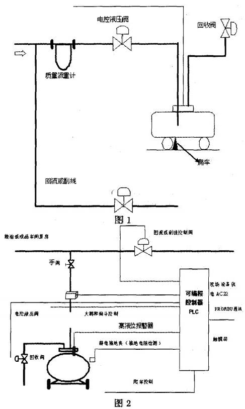打開回流閥(副線閥),當實裝量≥預(yù)裝量時關(guān)閉主控閥一段,收鶴管、收油斗,再進行下一槽車工作。在此過程中,由PLC聯(lián)鎖控制每一設(shè)備到位之后,才開始下一