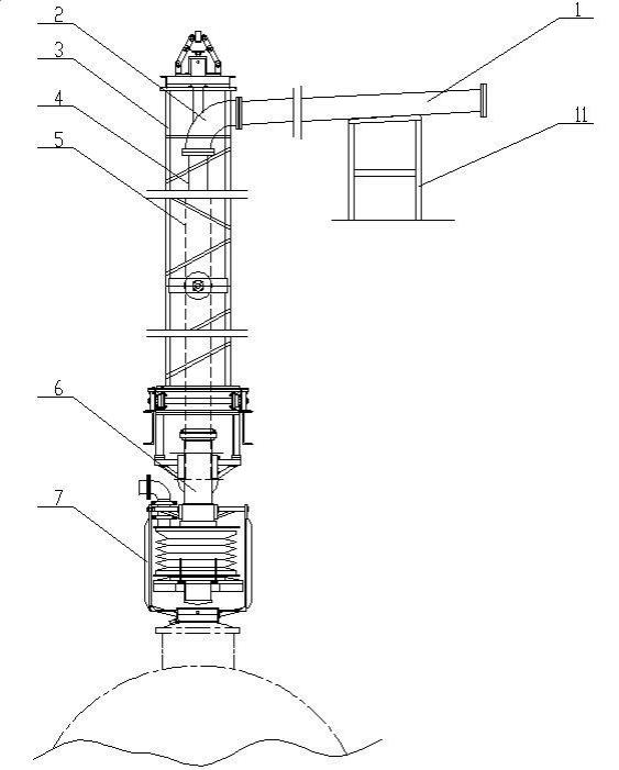 石化行業(yè)一種密封油品裝車鶴管產(chǎn)品使用說明,目前,公知的油品裝車大鶴管本體是由升降管、三通、行走小車、密閉罩等組合而成。行走小車帶動(dòng)三通和升降管水平對(duì)位,對(duì)位完成后,升降管下降,使升降管開口與三通對(duì)齊,油品通過升降管和三通進(jìn)入火車罐口。由于升降管不裝車時(shí)完全暴露在空氣中,空氣中的污染物很容易通過升降管開口進(jìn)入升降管內(nèi)部和升降管外部,造成裝車過程中油品易被污染。