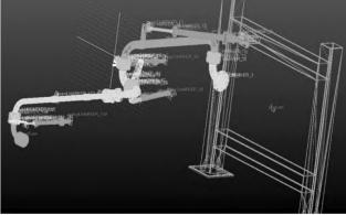 為了便于動力學分析,將Solidworks中補油裝卸鶴管模型進行簡化并導入adams軟件,如圖6所示.