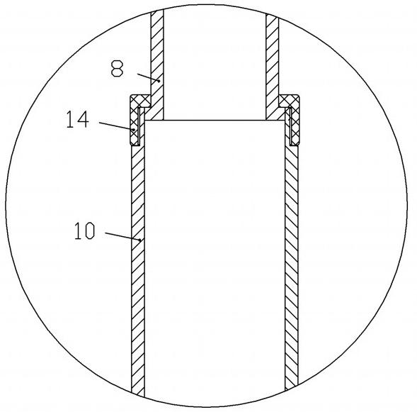 伸縮垂直管包括一伸縮垂直管、二伸縮垂直管、三伸縮垂直管和四伸縮垂直管,一伸縮垂直管、二伸縮垂直管、三伸縮垂直管和四伸縮垂直管依次同軸套裝并且相鄰的伸縮垂直管之間通過(guò)滑套安裝連接,進(jìn)液口設(shè)在四伸縮垂直管上,出液口設(shè)置在一伸縮垂直管上。