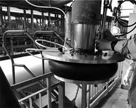 目前鐵路槽車密閉裝車鶴管結(jié)構(gòu)形式以板式密封帽為主,外加氣缸動(dòng)力壓緊密封帽,氣缸可直接作用在密封帽頂端提供軸向壓緊力,也可以作用在拉緊機(jī)構(gòu),由拉緊機(jī)構(gòu)供給密封帽軸向應(yīng)力,終使密封帽與槽車空緊密貼合,達(dá)到密閉裝車安全環(huán)保要求。