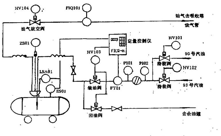 隨著科學技術的發(fā)展,人們對能源的利用日趨合理,并且對環(huán)保的要求越來越高。為了減少油品在裝卸過程中的揮發(fā)損耗,采用液下密閉裝車及油氣回收新技術,故我所在南區(qū)原噴濺式液下密閉裝車鶴管的改造設計中優(yōu)先采用新技術。通過對齊魯公司儲運廠大集中裝油鶴管控制系統(tǒng)和長嶺煉油廠逐一對位裝油方式以及燕山公司等同行業(yè)有關單位考查比較,取其先進,集我一體,確定選用新江樂清自動化儀表三廠生產(chǎn)的液下密閉裝車鶴管封閉式定量裝車裝置。此裝置采用鶴管頭端伸入槽車底部液下密閉裝車技術,經(jīng)過與廠方協(xié)商合作,在此裝置的基礎上,針對實際需要,對設備有關部位的控制系統(tǒng)進行了改進,實現(xiàn)了現(xiàn)場微機一對一式定量控制液下密閉裝車過程。